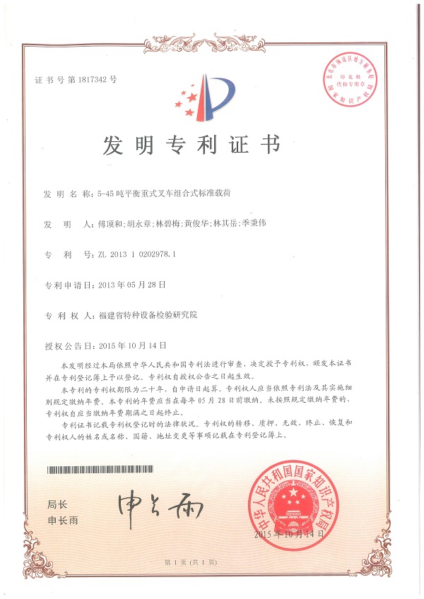 2015年5-45吨平衡重式叉车组合式标准载荷
