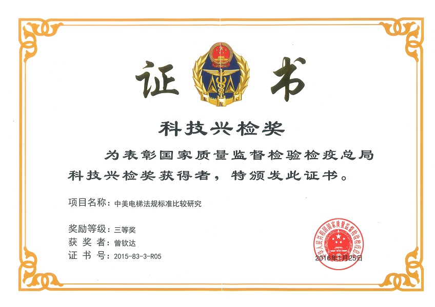 2016年科技兴检奖-中美电梯法规标准比较研究